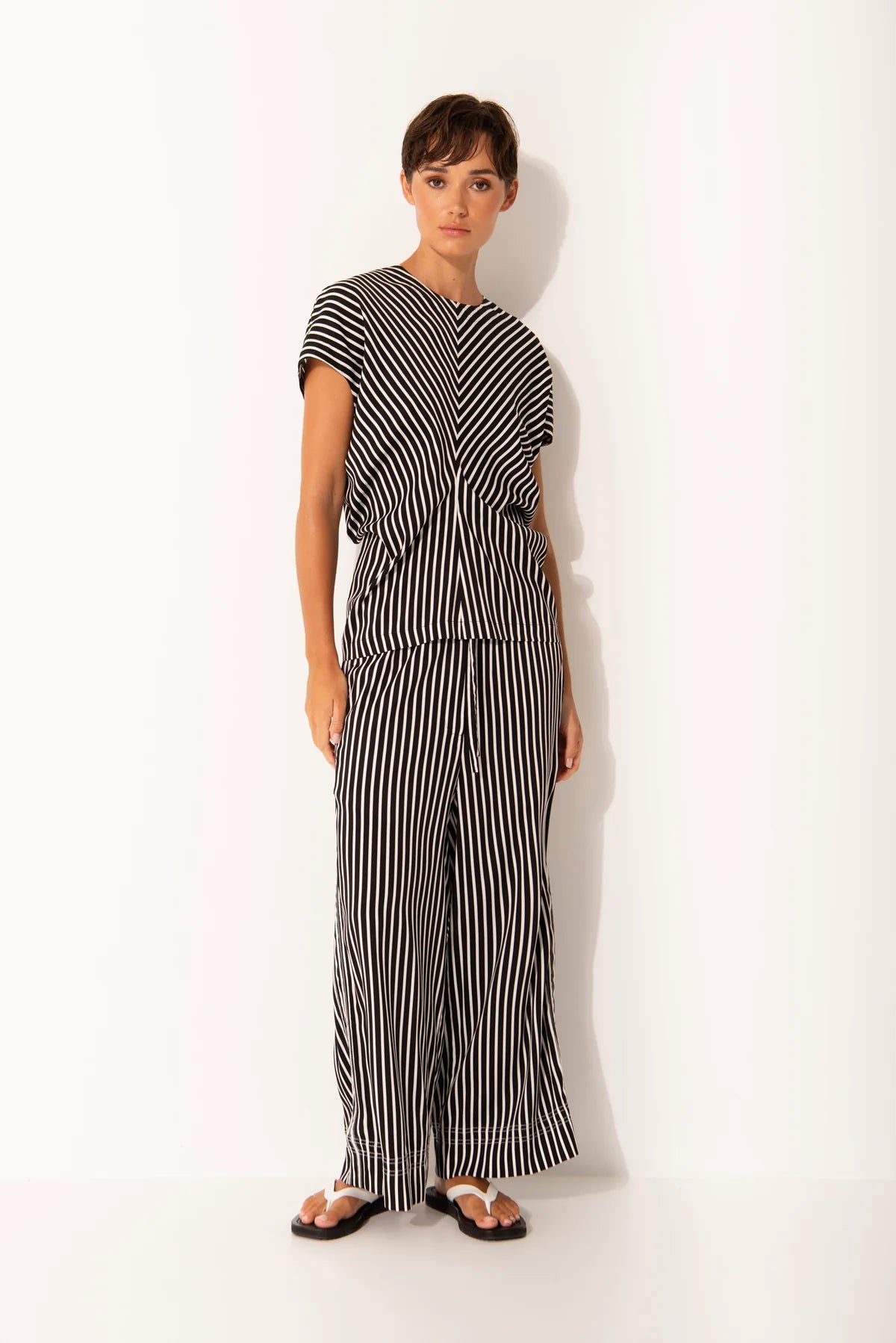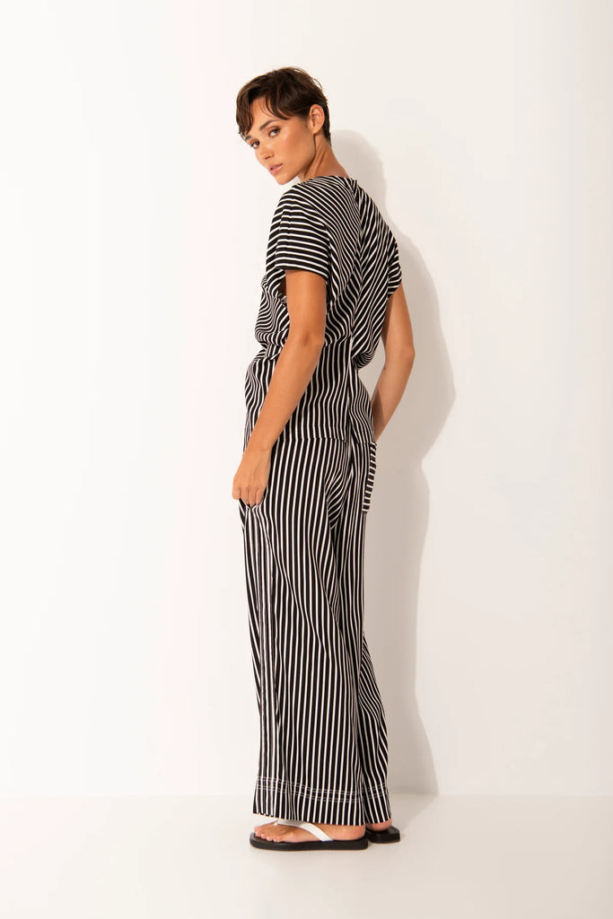 Crafted from cupro spandex, this print features a silky, sueded texture with built-in stretch for ease of movement. The ultra-soft elastic waistband ensures all-day comfort, while jetted pockets along the side seams add subtle functionality. Overstitched accents on the seams and hems elevate the design, complemented by full-length cut and refined self topstitch detailing.
