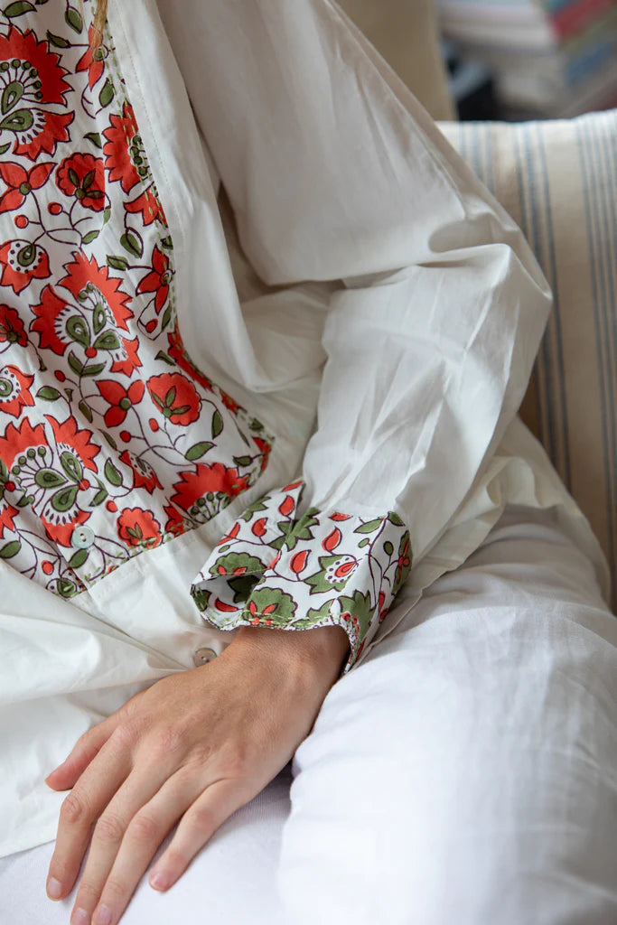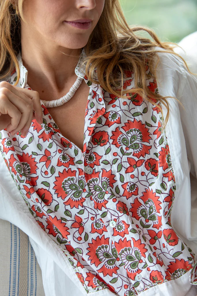 Mandalay Folk Love Dinner Shirt White/Multi - XS is backordered and will ship as soon as it is back in stock.