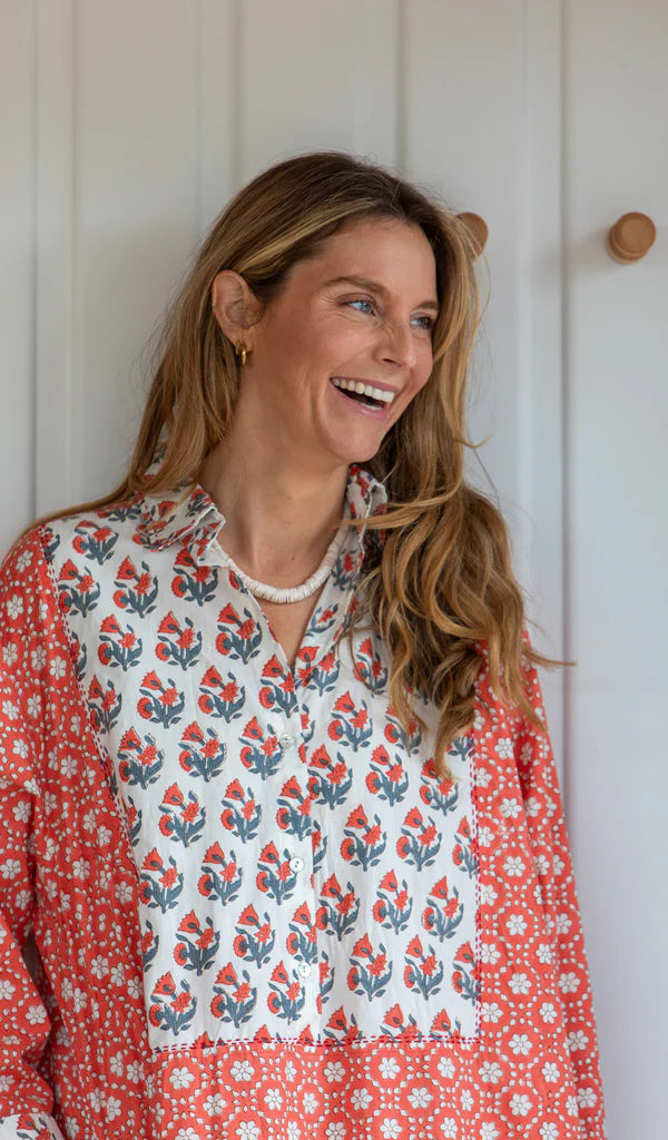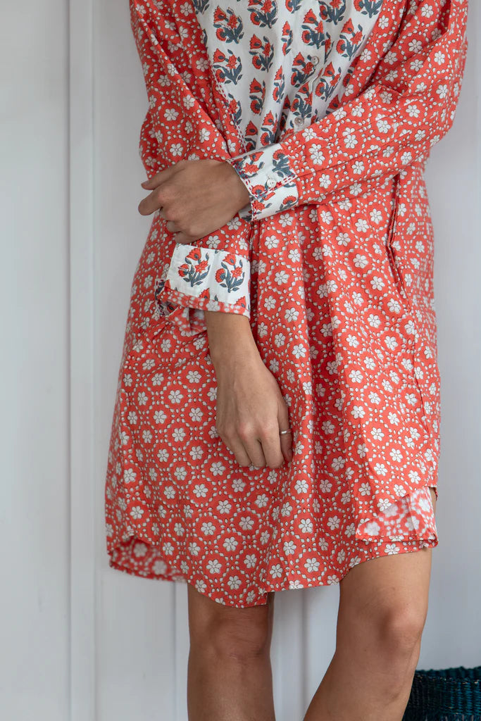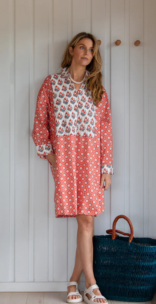 Mandalay Window Pane Shirt Dress Tomato - XS is backordered and will ship as soon as it is back in stock.